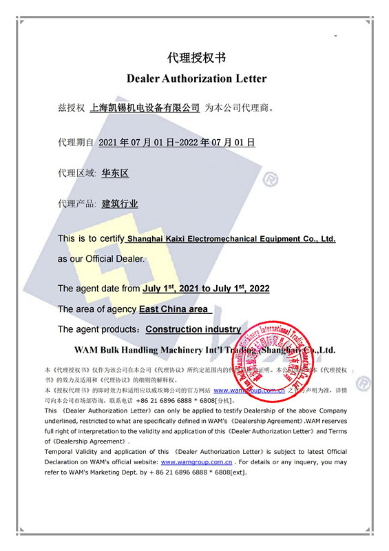 上海凯锡机电设备有限公司,威埃姆WAM官方授权代理商,自从引进意大利威埃姆WAM集团的产品和技术,经过20来年的积累,已逐渐成位散装固体物料处理技术和设备供应领域的创新代表。