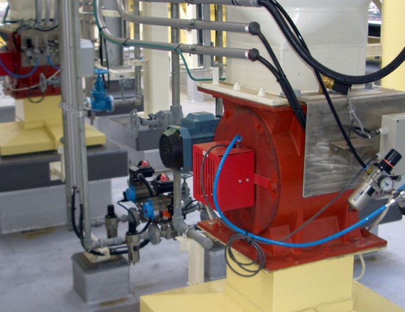 方形进料口的RV和圆形进料口的RVR均由以下部分组成:管型铸铁或不锈钢壳体、有一定数量V型横截面隔室的水平转子、驱动单元以及驱动另一端的壳盖。